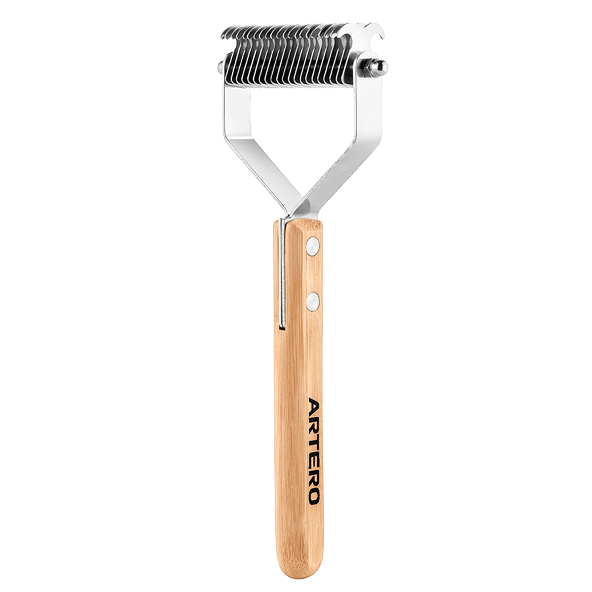 Χτένα αραίωσης χαίτης ουράς, περιποιείται το τρίχωμα, αραιώνει την τρίχα και βοηθά στο ξεμπέρδεμα. Αφαιρεί εύκολα την νεκρή τρίχα, και βοηθά στην καλή υγεία χαίτης και ουράς από την εποχική τριχόπτωση. Οβάλ λαβή από μπαμπού και μεταλλικές κεφαλές, προσφέρει ανθεκτικότητα στην συχνή χρήση. Δύο πλευρές με 32 λεπίδες, εισχωρούν στο πυκνό τρίχωμα και ξεμπερδεύουν εύκολα, αφαιρώντας κόμπους και νεκρό τρίχωμα.
