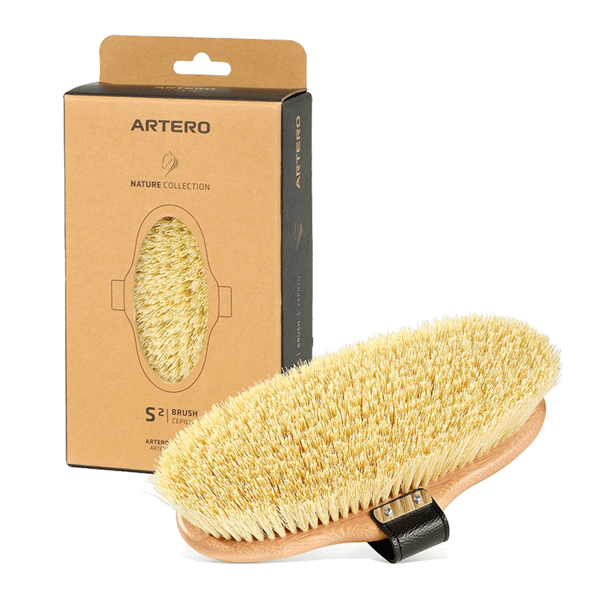 Βούρτσα για άλογα με σκληρό τρίχωμα, μήκους 2εκ. και σώμα από μπαμπού, φιλικό προς το περιβάλλον. Βοηθά στο βαθύ καθαρισμό του τριχώματος, στην αποτελεσματική απομάκρυνση σκόνης, λεκέδων, ακαθαρσιών και λάσπης. Η σκληρότητα της τρίχας προσφέρει απαλό μασάζ και διεγείρουν την επιδερμίδα του αλόγου, με αποτέλεσμα την υγιή ανάπτυξη της τρίχας, χαρίζοντας της λάμψη. Ο ιμάντας προσφέρει καλύτερο κράτημα, διευκολύνοντας το βούρτσισμα. Διατηρεί την ποιότητα του τριχώματος του αλόγου, χαρίζοντας ζωτικότητα και λάμψη. Για καλύτερο αποτέλεσμα, να βουρτσίζετε πάντα προς στην κατεύθυνση της ανάπτυξης των τριχών.