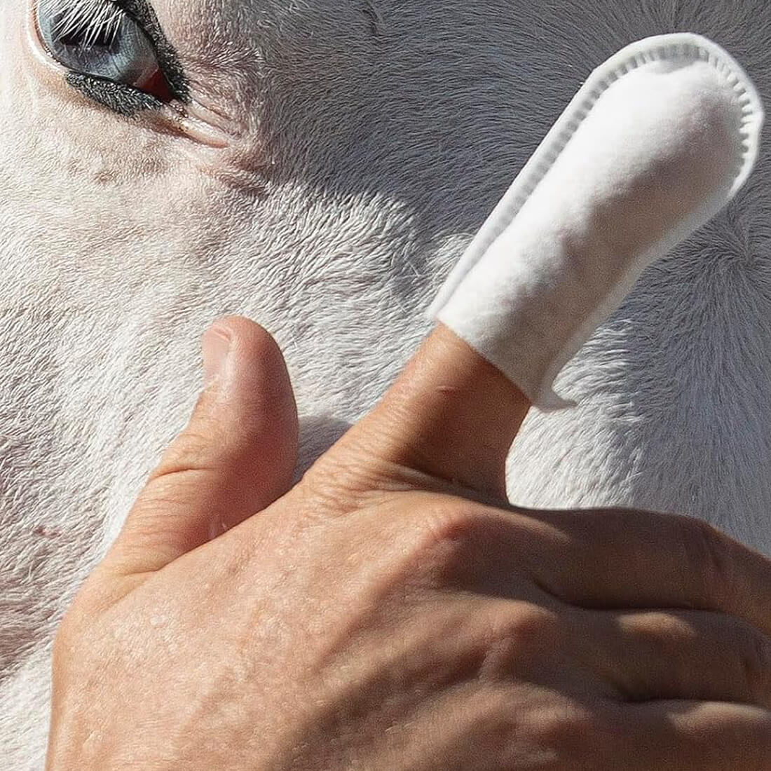 Πλύνετε τα χέρια σας πριν από κάθε χρήση, εφαρμόστε πανάκι στο δείκτη σας, αποφύγετε βιαστικές κινήσεις. Περάστε απαλά στα βλέφαρα και δάκρυα του αλόγου, αφαιρώντας εκκρίσεις, κρούστες και λεκέδες. Επαναλάβετε τη διαδικασία μέχρι να καθαρίσει η περιοχή. Κρατήστε τη συσκευασία καλά κλειστή για να διατηρηθεί η υγρασία του προϊόντος.
