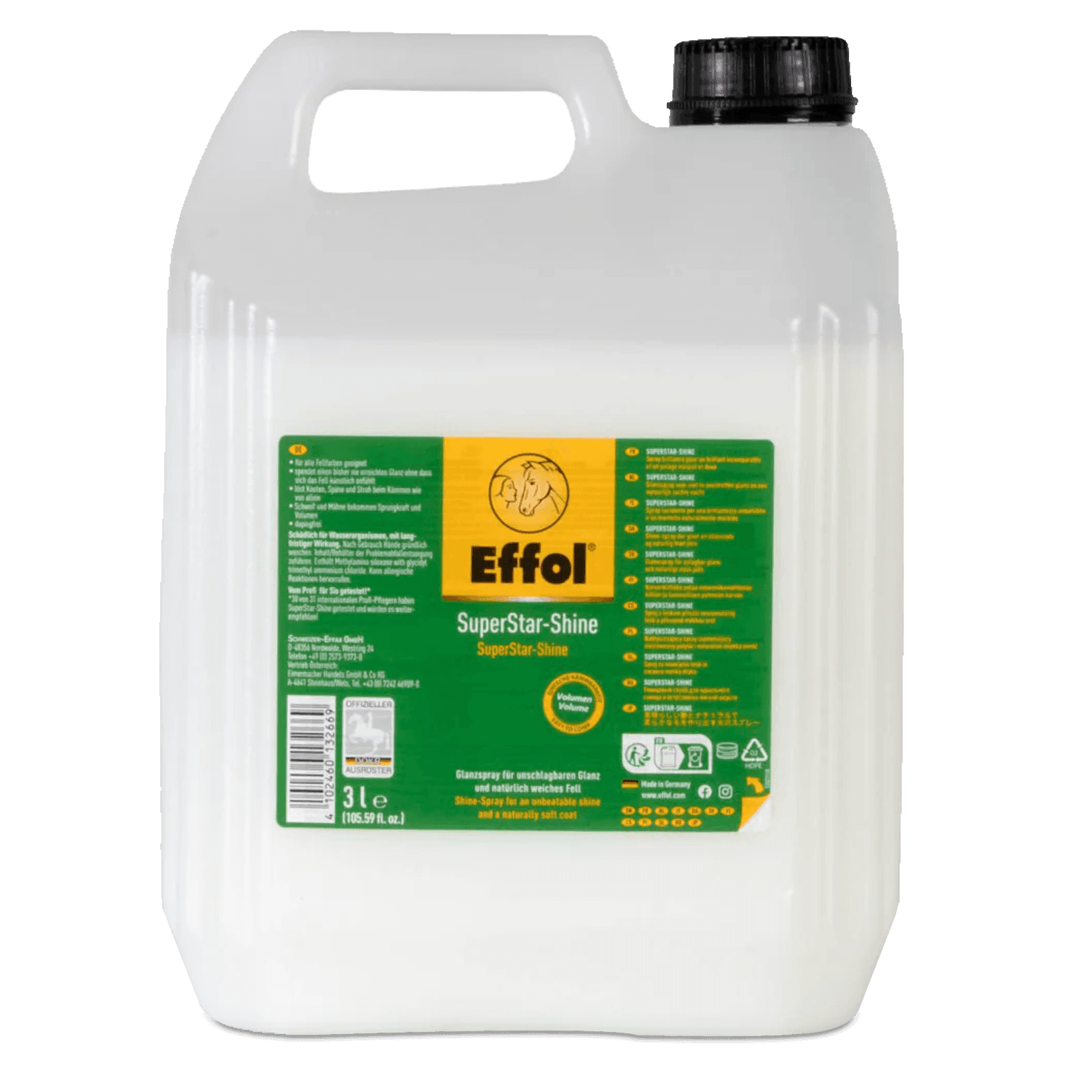 Spray περιποίησης, ενυδάτωσης και λάμψης για χαίτη, τρίχωμα και ουρά. Ειδική φόρμουλα, ενυδατώνει τον άξονα της τρίχας, συμβάλλοντας στην αποτελεσματική μείωση της ξηρότητας, της φθοράς και των σπασμένων άκρων. Η καινοτόμος σύνθεση, απομακρύνει εύκολα, βρωμιά, ιδρώτα και σωματίδια ρινισμάτων, αχύρου. Βοηθά στο ξεμπέρδεμα των μαλλιών κατά το χτένισμα, διατηρώντας το μαλακό και λαμπερό. Τα προσεγμένα συστατικά  αναδομούν την τρίχα, χαρίζοντας όγκο που διαρκεί ημέρες. Υποαλλεργική και φιλική προς το δέρμα σύνθεση. Περιέχει γαλάκτωμα σιλικόνης.