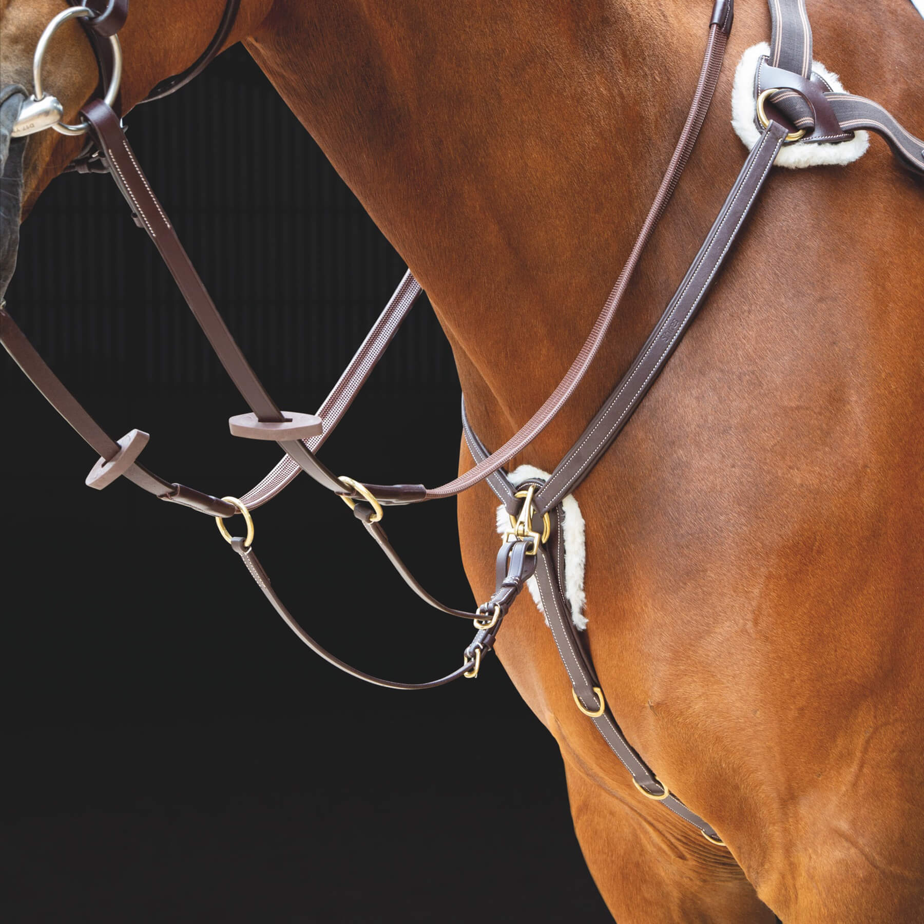 Κατασκευασμένο από φυσικό δέρμα, επιστήθιο 5-point προσφέρει υψηλή αντοχή και προστασία. Προστατευτικά τμήματα με αφρώδες υλικό και επένδυση μαλακού δέρματος. Αποσπώμενα προστατευτικά pads επικαλυμμένα με συνθετική γούνα, προστατεύουν από έντονη χρήση, τριβές και ενοχλήσεις του δέρματος. Ελαστικοί ιμάντες ώμου, απορροφούν ένταση. Αποσπώμενο δερμάτινο martingale. Ενισχυμένα ανοξείδωτα μεταλλικά στοιχεία. Πολλαπλές θέσεις αυξομείωσης. Δέρμα φυτικής δέψης προσφέρει εξαιρετικό φινίρισμα και αντοχή.