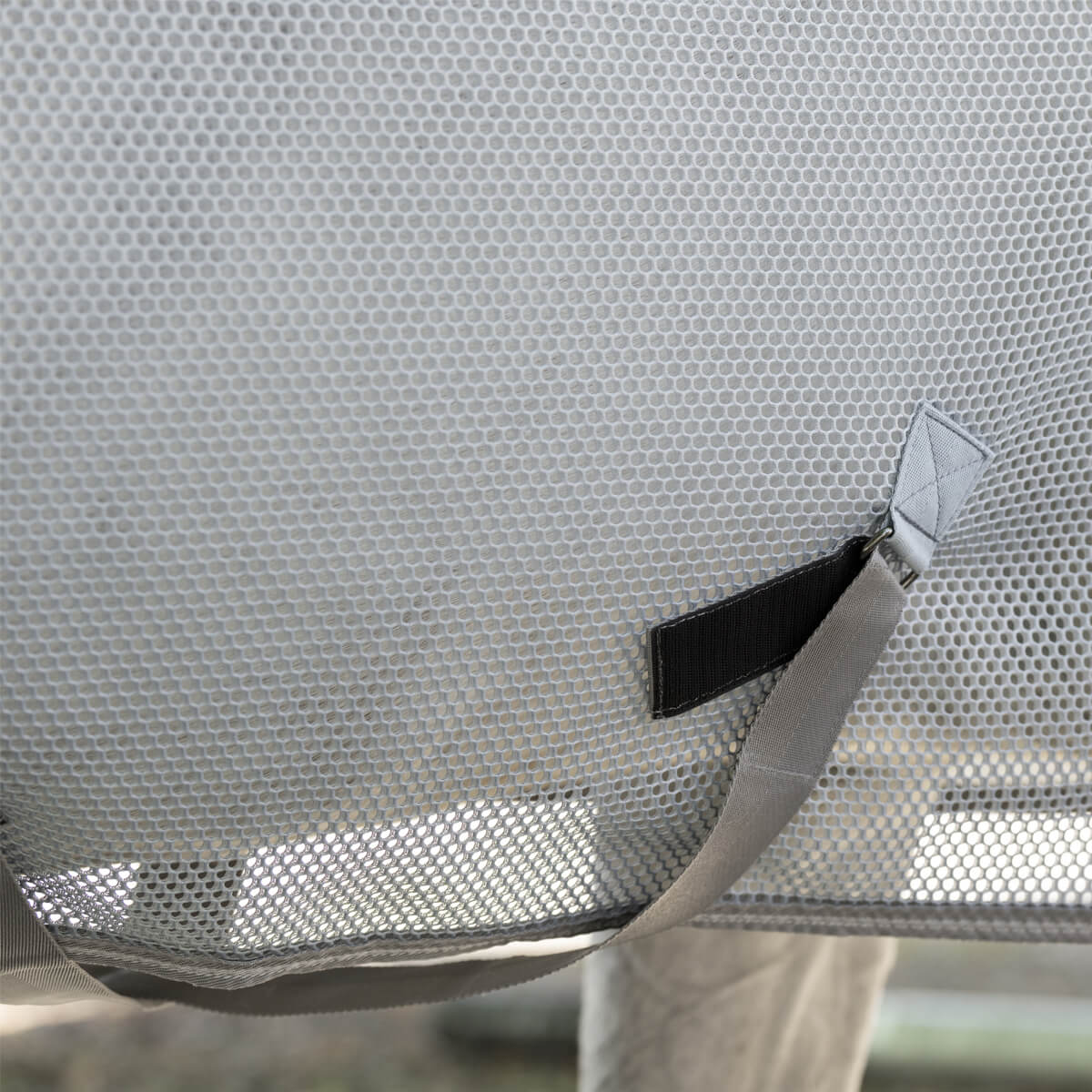 - Κατασκευή από ελαφρύ και ανθεκτικό διάτρητο 3D-mesh ύφασμα, μεγιστοποιεί τη ροή αέρα ενώ ταυτόχρονα προστατεύει από έντομα και επιβλαβή UV ακτινοβολία.