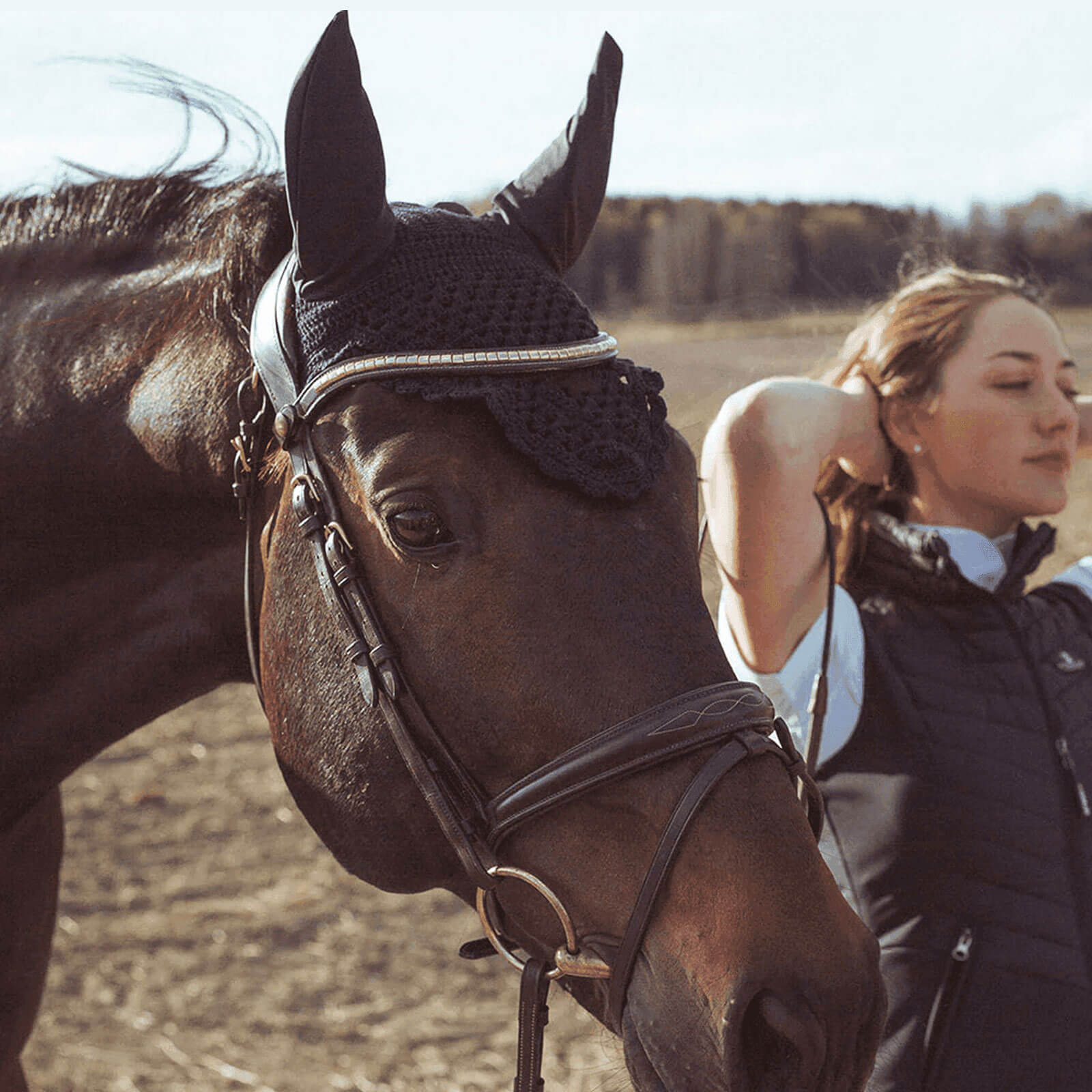 - Eλαστικά αυτιά με επένδυση νεοπρενίου δημιουργούν ένα πιο ήσυχο περιβάλλον γύρω από τα αυτιά του αλόγου, περιορίζοντας τους ανεπιθύμητους ήχους και βοηθώντας το να διατηρεί την προσοχή του.
