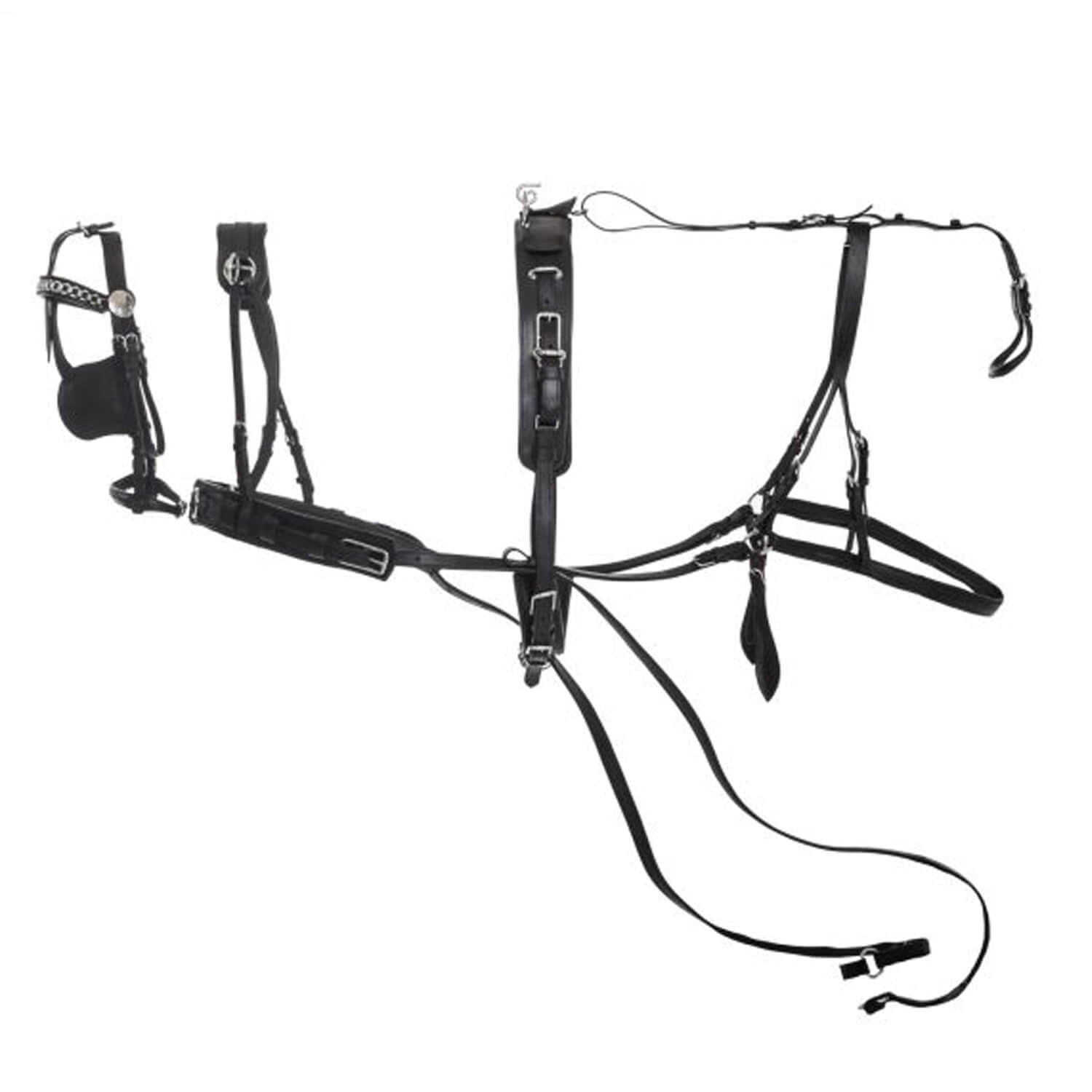Ολοκληρωμένο set αμαξοδήγησης. Ενισχυμένο φυσικό ανθεκτικό δέρμα με εσωτερικές ενισχύσεις ιμάντα, ανοξείδωτα μεταλλικά στοιχεία και σύνδεσμοι. Ανθεκτικές ραφές ακριβείας, υπενδεδυμένα εσωτερικά τμήματα από μαλακό φυσικό δέρμα. Θήκη μεταφοράς.