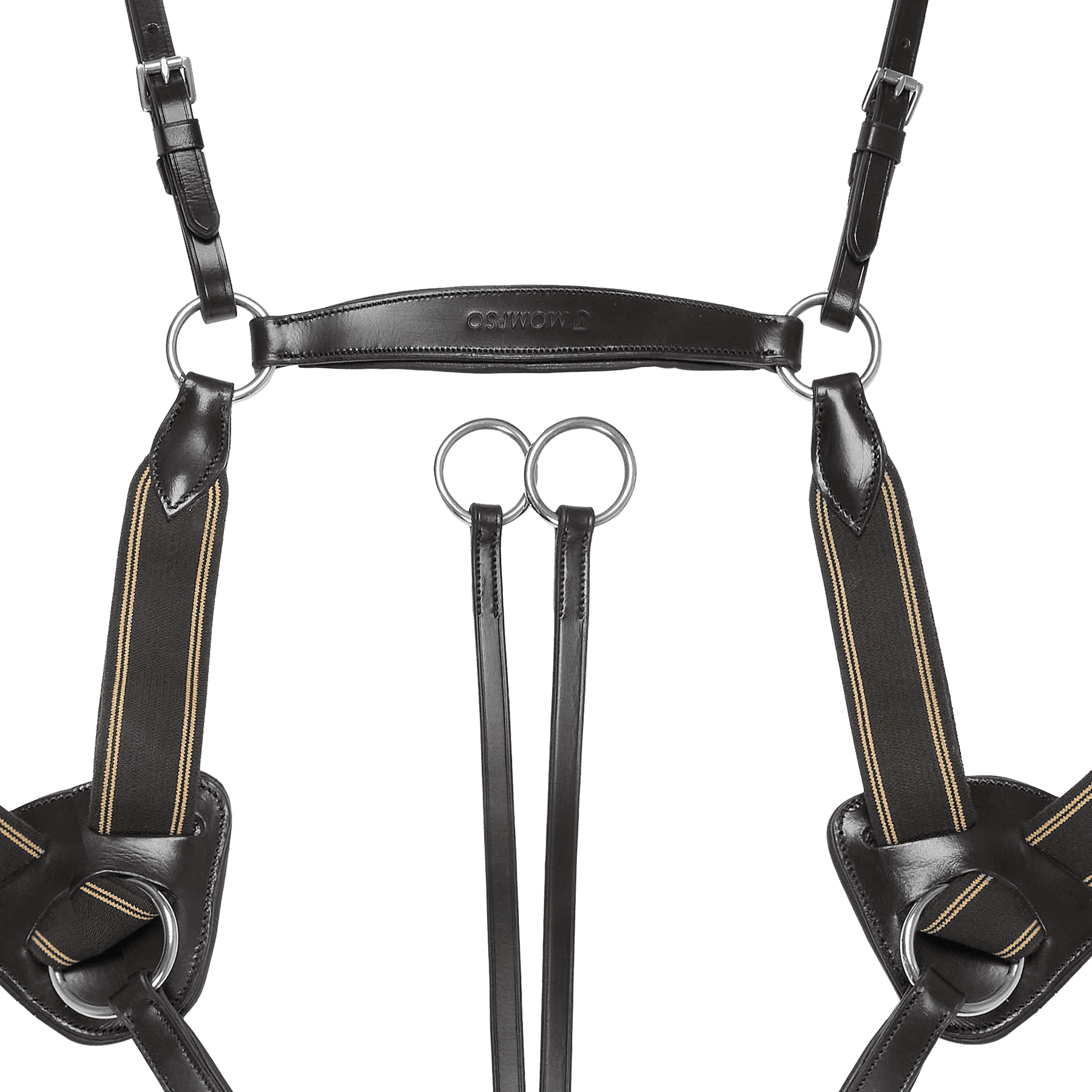 Κλασικό επιστήθιο εμποδίων 5 σημείων. Κατασκευασμένό από φυσικό δέρμα υψηλής αντοχής με λεία επιφάνεια. Ελαστικοί ιμάντες και προστατευτικά pad με memory foam και επένδυση μαλακού δέρματος. Αποσπώμενο δερμάτινο martingale. Πολλαπλά σημεία Αυξομείωσης, μεταλλικά στοιχεία και γάντζοι διασύνδεσης. Επενδύσεις από μαλακό δέρμα και memory foam. Ιδανικό επιστήθιο εμποδίων, για προπονηση και διαγωνισμούς.