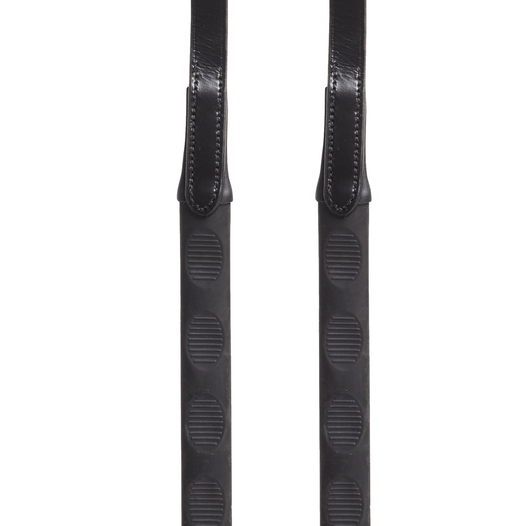 Ηνία κατασκευασμένα από υψηλής ποιότητας φυσικό δέρμα με λεία επιφάνεια. Κύριο σώμα από μαλακό αντιολισθητικό λάστιχο, προσφέρει μέγιστη προσφυση. Ειδικές θέσεις για δάκτυλα χωρίς στοπ, σταθεροποιούν το χέρι στα ηνία και προσφέρουν μαλακό κράτημα. Ιδανικά ηνία για προπόνηση στην αθλητική ιππασία.