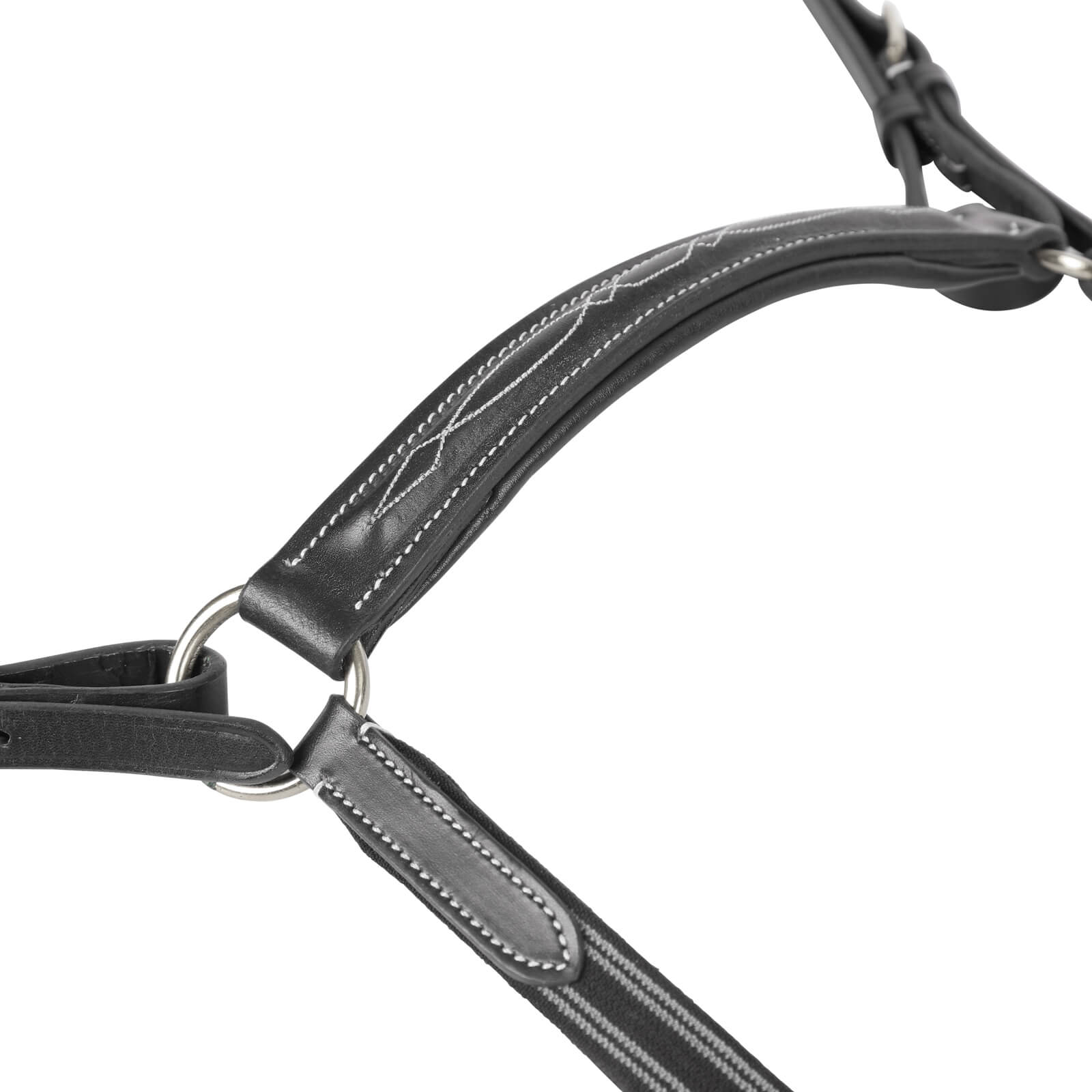 Δερμάτινο επιστήθιο τριών σημείων προσφέρει υψηλή αντοχή και προστασία. Φαρδύ εμπρόσθιο προστατευτικό τμήμα με αφρώδες υλικό και επένδυση μαλακού δέρματος. Ελαστικοί ιμάντες ώμου, απορροφούν ένταση. Αποσπώμενο δερμάτινο martingale. Ενισχυμένα ανοξείδωτα μεταλλικά στοιχεία. Πολλαπλές θέσεις αυξομείωσης.