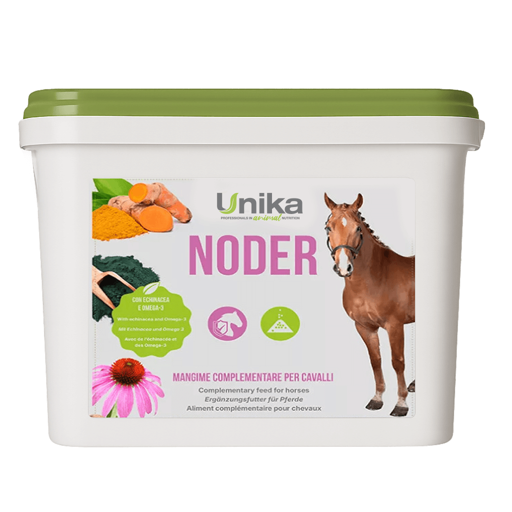 Το Noder είναι ένα φυτικό συμπλήρωμα διατροφής, ιδανικό για άλογα που είναι ευαίσθητα στα τσιμπήματα εντόμων – ιδιαίτερα της Culicoides – και εμφανίζουν επαναλαμβανόμενες καλοκαιρινές δερματίτιδες.
