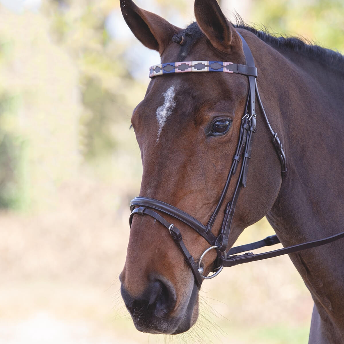 • Προμετωπίδα απο φυσικό δέρμα, με πλεκτό μοτίβο, εφαρμόζει στο χαλινό και προσδίδει σύγχρονο country look.