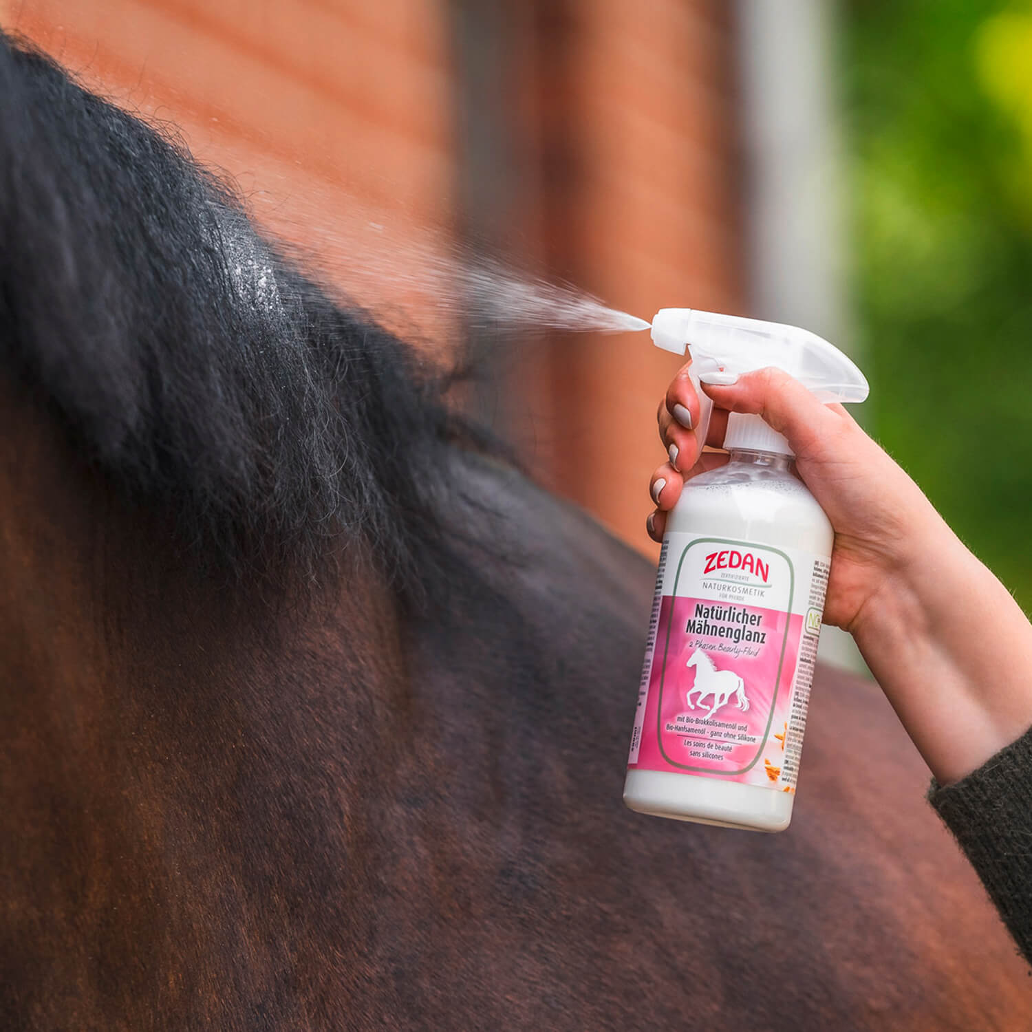 Εφαρμογή: Ανακινείστε δυνατά πριν τη χρήση, εφαρμόζουμε σε καθαρή χαίτη και στην ουρά με ομοιόμορφους ψεκασμούς και αμέσως χτενίζουμε με βούρτσα.