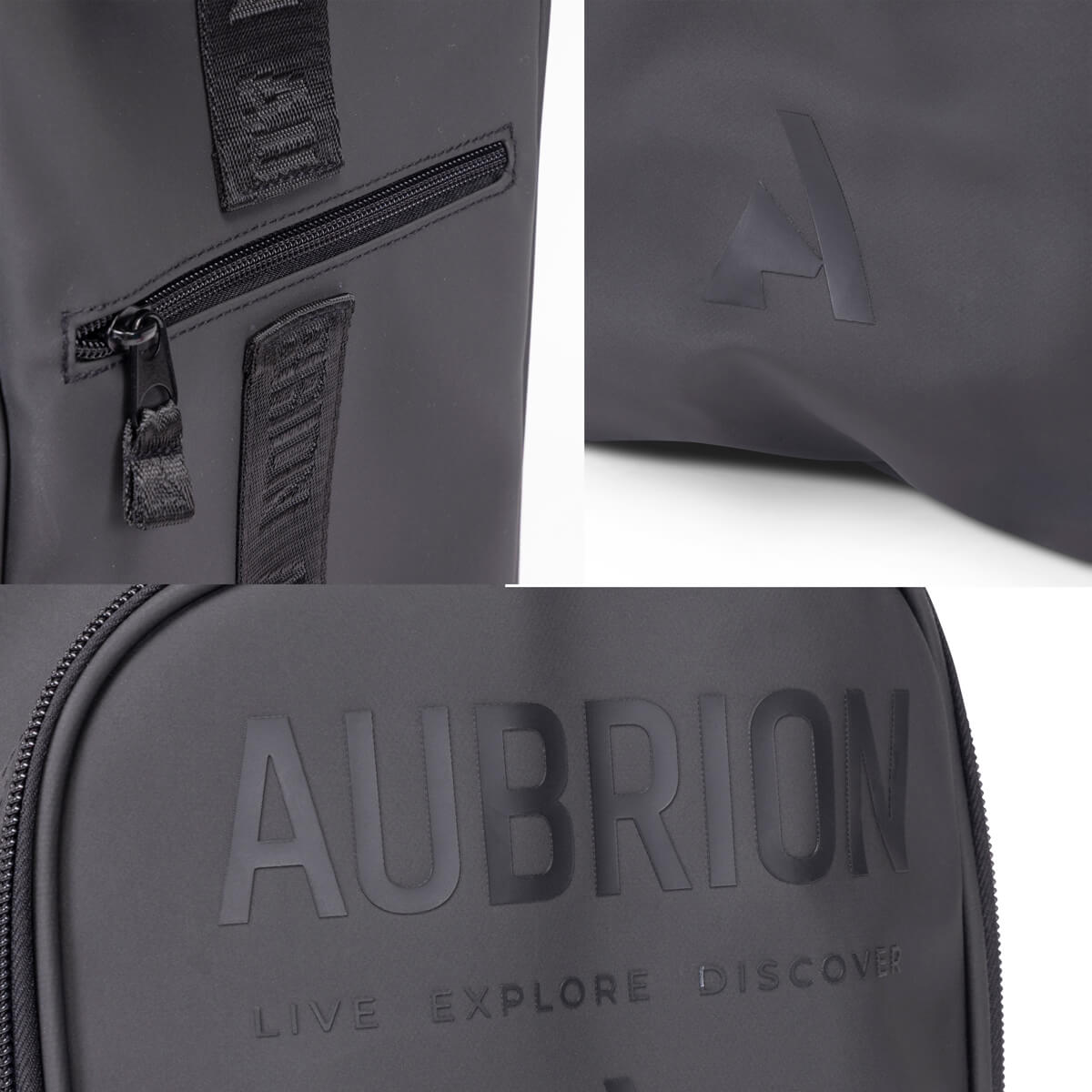 - Branding στοιχεία με υφαντή ταινία AUBRION και κεντρικό black matt λογότυπο και motto.