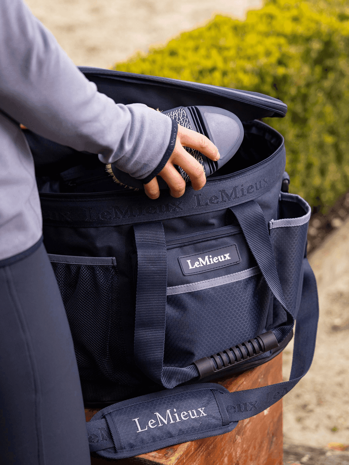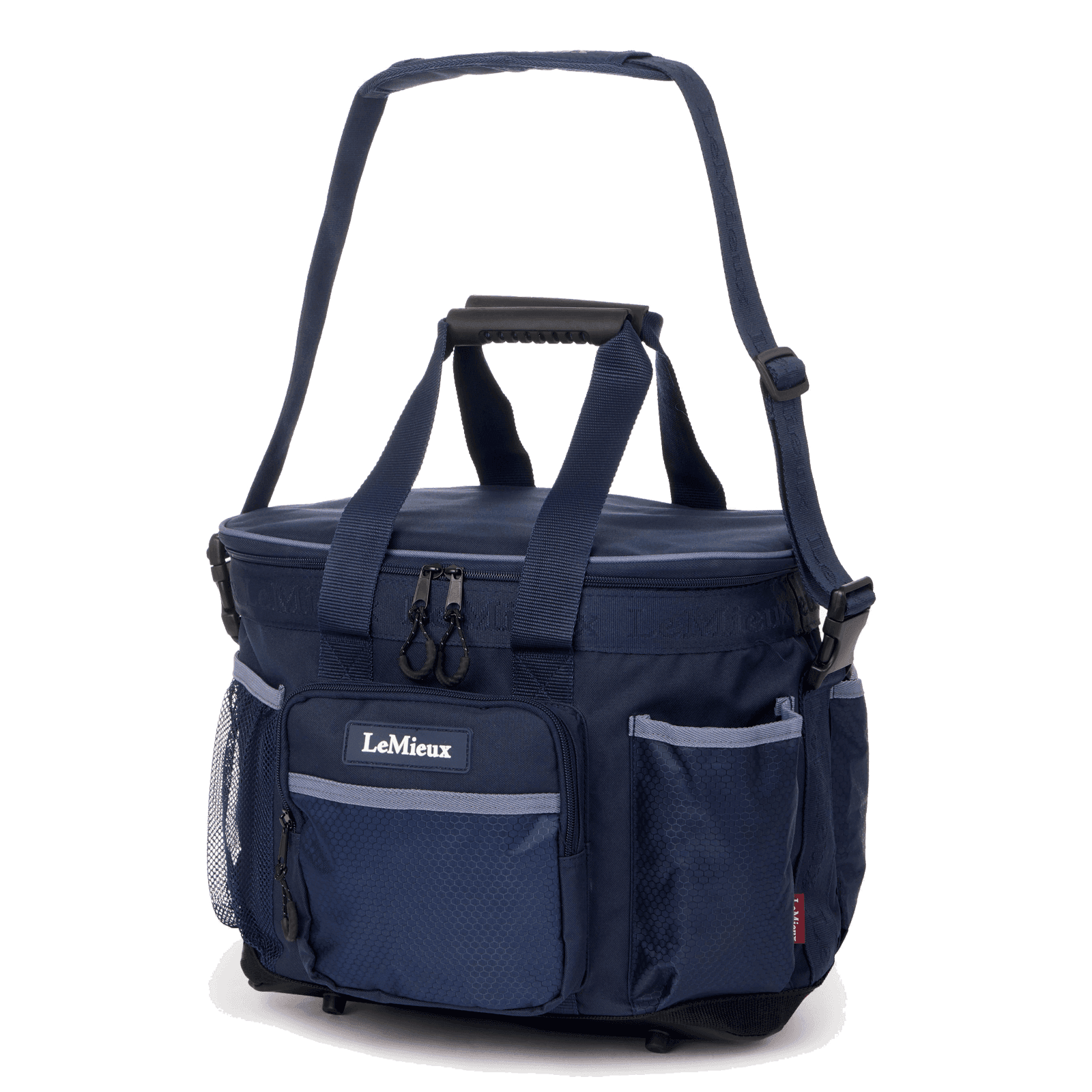 Κεντρικές ενισχυμένες λαβές και αποσπώμενος ρυθμιζόμενος ιμάντας ώμου για εύκολη μεταφορά και κράτημα. Ανθεκτική επενδεδυμένη βάση με λαστιχένιους πάτους. LEMIEUX rubber logo.