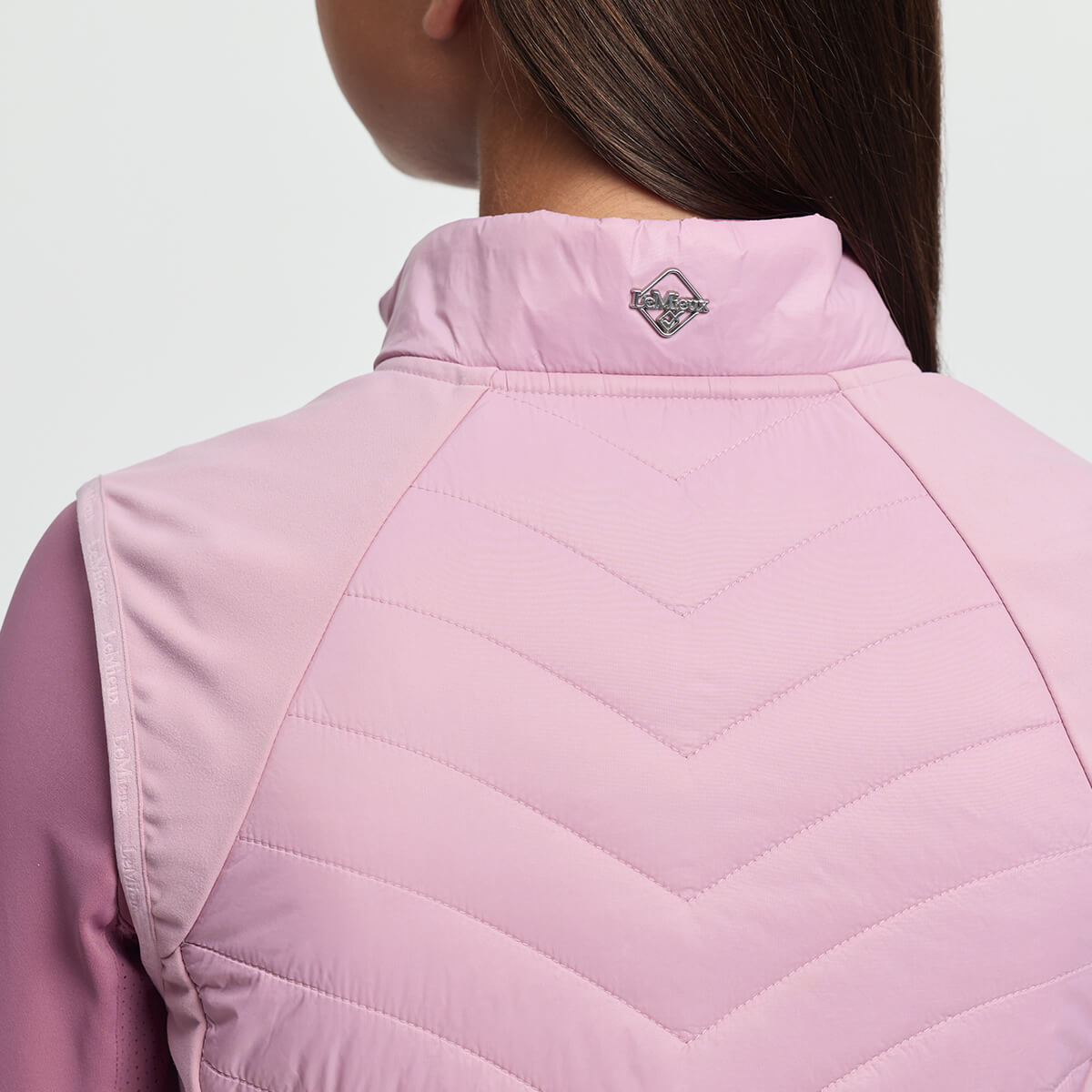 - LeMieux branding με λογότυπο στο στήθος και μεταλλικό έμβλημα στο πίσω μέρος του γιακά.
