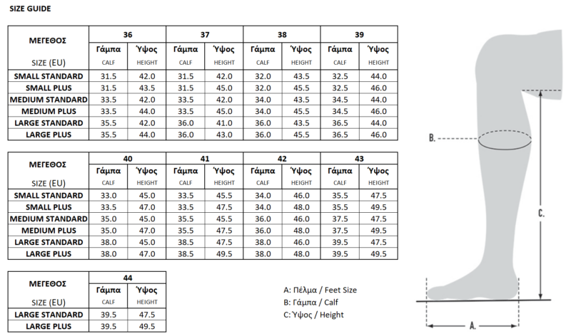 | Μέγεθος Γάμπας | SMALL, SMALL PLUS, MEDIUM, MEDIUM PLUS, LARGE |